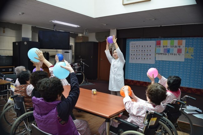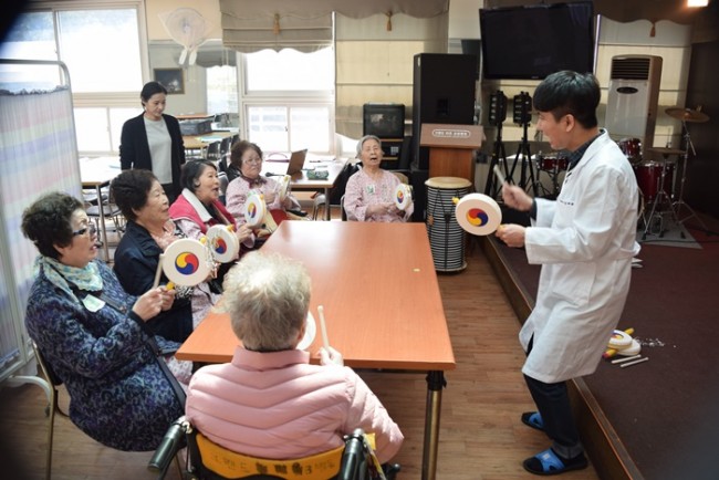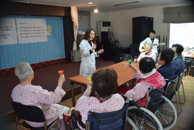 그랜드자연요양병원은 어르신들을 대상으로 <치료적 노래만들기와 부르기> <악기 연주하기> <음악 회상하기> <움직이기/ 춤추기> <음악 감상하기> 등 음악의 사용으로 삶의 질을 향상시키고, 음악요법 활동에 참여함으로 상호작용과 사회적 의사소통의 참여도를 높이며 긍정적 경험을 통하여 심리적 안정을 얻고자 한다.