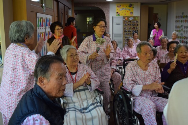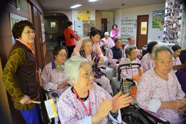 그랜드자연요양병원의 다양한 음악요법 프로그램 중 어르신들이 선호하는 음악활동은 노래부르기(기억 속에 잔존하고 있는 노래를 생각나게 하고 가사를 통해 문자의 기억을 되살려 언어능력의 회복을 기대할 수 있다.)와 악기연주(<리듬악기>연주를 통해 규칙을 기억하고 실행하는 연습을 반복해 기억력이 떨어지는 것을 막는 효과가 있다. 또한, 리듬감의 자극, 신경계 및 운동계의 손발의 운동능력을 자극한다)이다.