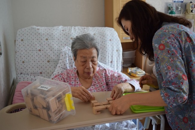 그랜드자연요양병원에서는 노인생활과학연구소가 개발한 다양한 노인교구를 노인용 교구 활용지도사를 통해 입원하고 있는 어르신들께 적용하여 인지개선, 공간지각, 소통도구로 활용하고 있다.