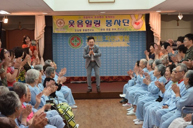 그랜드자연요양병원은 우리 어르신들이 보다 나은 병상생활을 통해 건강해지기 위한 문화 프로그램으로 웃음박사 조상영 교수를 모셔 즐거운 웃음치료를 하고 있다.