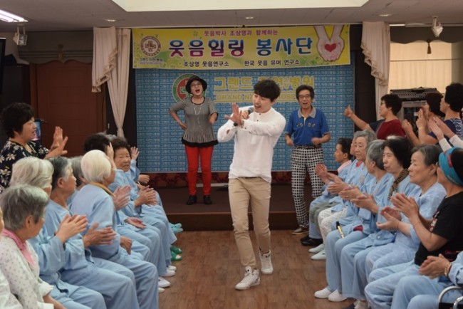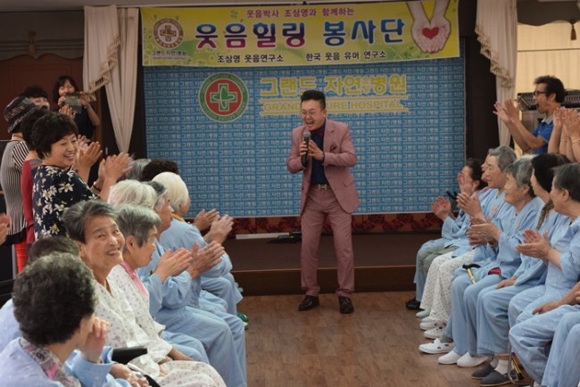 그랜드자연요양병원은 우리 어르신들이 보다 나은 병상생활을 통해 건강해지기 위한 문화 프로그램으로 웃음박사 조상영 교수를 모셔 즐거운 웃음치료를 하고 있다.