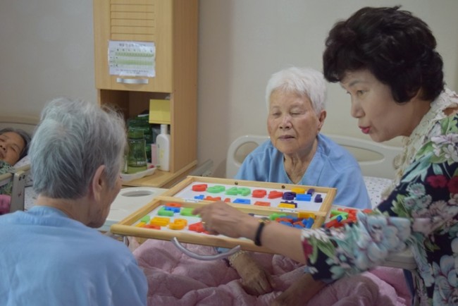그랜드자연요양병원에서는 노인생활과학연구소가 개발한 다양한 노인교구를 노인용 교구 활용지도사를 통해 입원하고 있는 어르신들께 적용하여 인지개선, 공간지각, 소통도구로 활용하고 있다.
