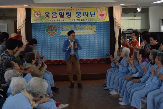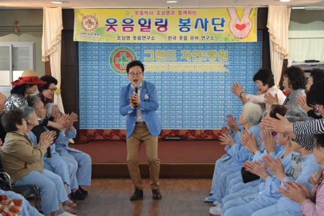 조상영 교수와 함께하는 5월의 즐거운 웃음치료 시간에 페이지 정보 작성자 최고관리자 작성일16-05-30 11:51 조회700회 댓글0건 이전글 다음글 목록 본문 그랜드자연요양병원은 우리 어르신들이 보다 나은 병상생활을 통해 건강해지기 위한 문화 프로그램으로 웃음박사 조상영 교수를 모셔 즐거운 웃음치료를 하고 있다. 댓글목록 등록된 댓글이 없습니다. 이전글 다음글 목록