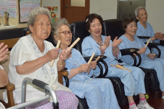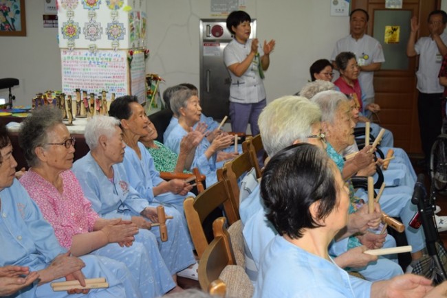 그랜드자연요양병원의 다양한 음악치료 프로그램 중 어르신들이 선호하는 음악활동은 노래부르기(기억 속에 잔존하고 있는 노래를 생각나게 하고 가사를 통해 문자의 기억을 되살려 언어능력의 회복을 기대할 수 있다.)와 악기연주(<리듬악기>연주를 통해 규칙을 기억하고 실행하는 연습을 반복해 기억력이 떨어지는 것을 막는 효과가 있다. 또한, 리듬감의 자극, 신경계 및 운동계의 손발의 운동능력을 자극한다)이다.