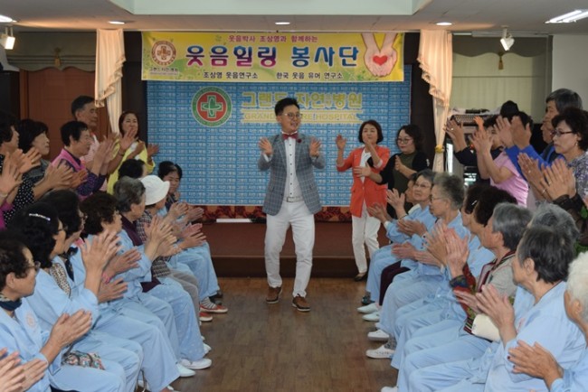 조상영 교수와 함께하는 9월의 즐거운 웃음치료 시간에 페이지 정보 작성자 최고관리자 작성일16-11-05 16:51 조회590회 댓글0건 이전글 다음글 목록 본문 그랜드자연요양병원은 우리 어르신들이 보다 나은 병상생활을 통해 건강해지기 위한 문화 프로그램으로 웃음박사 조상영 교수를 모셔 즐거운 웃음치료를 하고 있다. 댓글목록 등록된 댓글이 없습니다. 이전글 다음글 목록