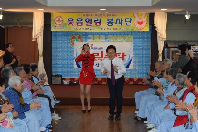 조상영 교수와 함께하는 11월의 즐거운 웃음치료 시간에 페이지 정보 작성자 최고관리자 작성일15-12-03 12:18 조회713회 댓글0건 이전글 다음글 목록 본문 그랜드자연요양병원은 우리 어르신들이 보다 나은 병상생활을 통해 건강해지기 위한 문화 프로그램으로 웃음박사 조상영 교수를 모셔 즐거운 웃음치료를 하고 있다. 댓글목록 등록된 댓글이 없습니다. 이전글 다음글 목록