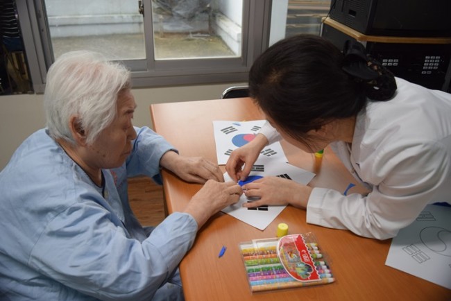 3월의 미술치료 시간에 페이지 정보 작성자 최고관리자 작성일16-04-04 16:25 조회994회 댓글0건 이전글 다음글 목록 본문 그랜드자연요양병원에서 활용하고 있는 어르신들을 위한 인지재활 전문프로그램중 미술심리치료는 그림으로 어르신들의 마음을 읽는다. 삼일절을 기념하며 감각운동력(콜라주)과 지남력((시, 공간, 지각)을 활성화하고 눈과 손의 협응력을 높이는 <태극기 콜라주>를 색종이 모자이크로 활동을 하였다. 댓글목록 등록된 댓글이 없습니다. 이전글 다음글 목록