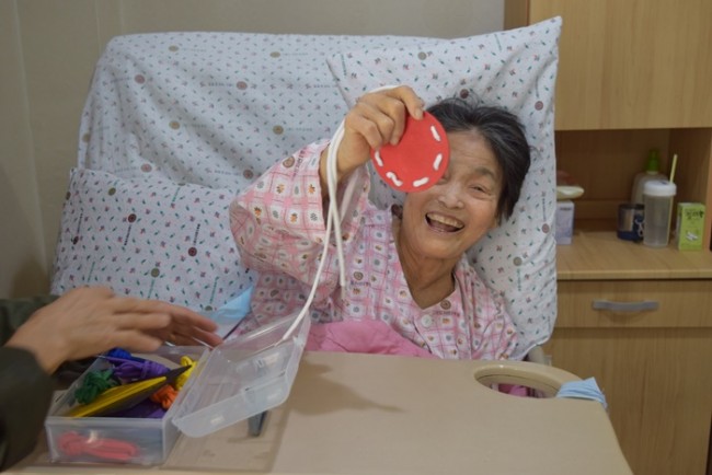 그랜드자연요양병원에서는 노인생활과학연구소가 개발한 다양한 노인교구를 노인용 교구 활용지도사를 통해 입원하고 있는 어르신들께 적용하여 인지개선, 공간지각, 소통도구로 활용하고 있다.