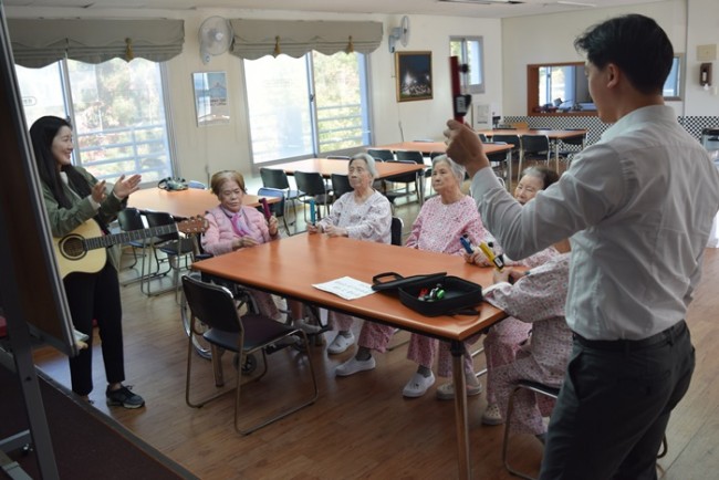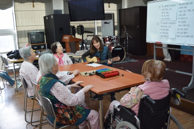 그랜드자연요양병원은 어르신들을 대상으로 <치료적 노래만들기와 부르기> <악기 연주하기> <음악 회상하기> <움직이기/ 춤추기> <음악 감상하기> 등 음악의 사용으로 삶의 질을 향상시키고, 음악요법 활동에 참여함으로 상호작용과 사회적 의사소통의 참여도를 높이며 긍정적 경험을 통하여 심리적 안정을 얻고자 한다.