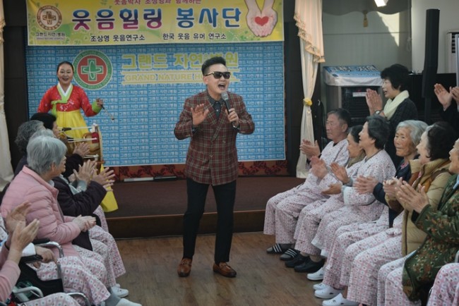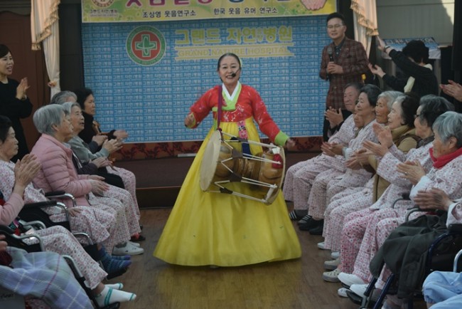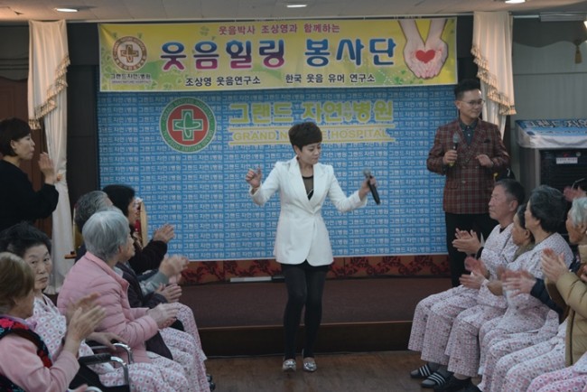 그랜드자연요양병원은 우리 어르신들이 보다 나은 병상생활을 통해 건강해지기 위한 특화 프로그램으로 웃음박사 조상영 교수를 모셔 즐거운 웃음요법을 하고 있다.