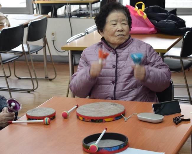 그랜드자연요양병원은 어르신들을 대상으로 <치료적 노래만들기와 부르기> <악기 연주하기> <음악 회상하기> <움직이기/ 춤추기> <음악 감상하기> 등 음악의 사용으로 삶의 질을 향상시키고, 음악요법 활동에 참여함으로 상호작용과 사회적 의사소통의 참여도를 높이며 긍정적 경험을 통하여 심리적 안정을 얻고자 한다.