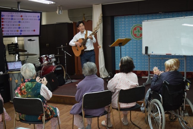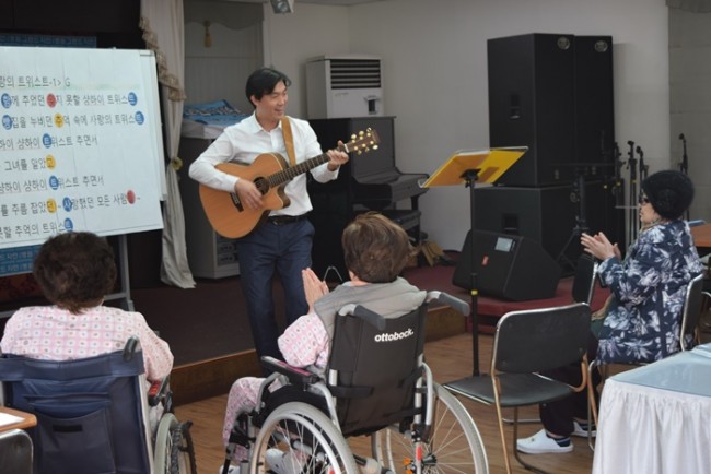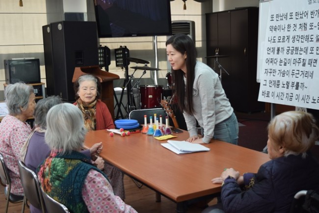 그랜드자연요양병원은 어르신들을 대상으로 <치료적 노래만들기와 부르기> <악기 연주하기> <음악 회상하기> <움직이기/ 춤추기> <음악 감상하기> 등 음악의 사용으로 삶의 질을 향상시키고, 음악요법 활동에 참여함으로 상호작용과 사회적 의사소통의 참여도를 높이며 긍정적 경험을 통하여 심리적 안정을 얻고자 한다.