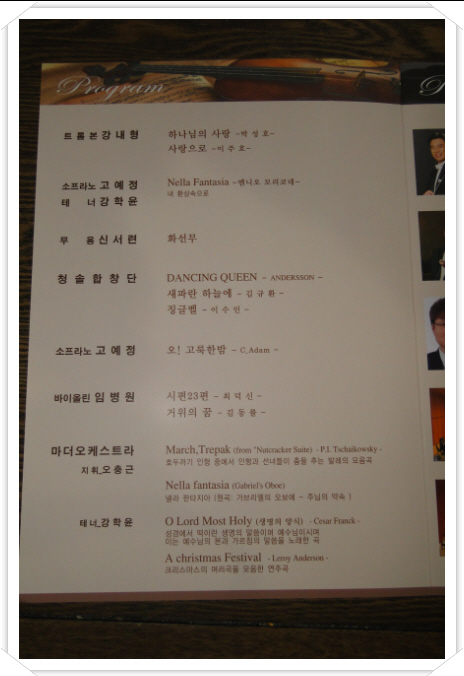 2010년 송년음악회 페이지 정보 작성자 운영자 작성일10-12-21 08:43 조회814회 댓글0건 이전글 다음글 목록 본문 그랜드자연요양병원은 제38회 그랜드자연음악회에 부산 남구문화예술회 음악회를 초청 오는 12.23일(목)19:00 5층 이벤트룸에서 공연을 가질 예정이다. 댓글목록 등록된 댓글이 없습니다. 이전글 다음글 목록