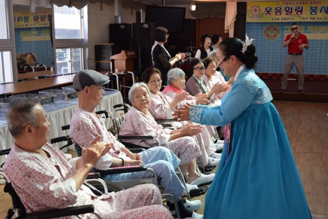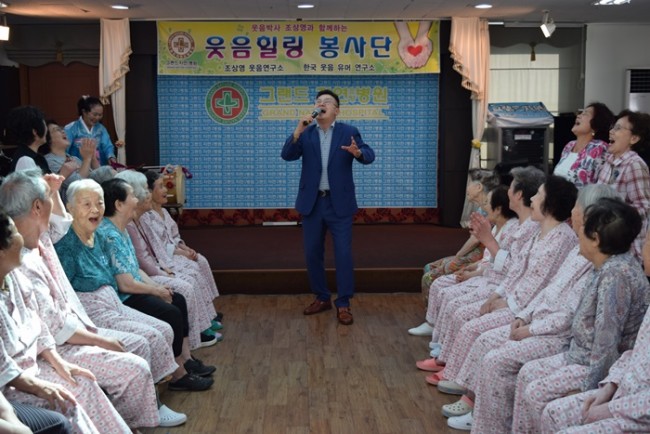 그랜드자연요양병원은 우리 어르신들이 보다 나은 병상생활을 통해 건강해지기 위한 특화 프로그램으로 웃음박사 조상영 교수를 모셔 즐거운 웃음요법을 하고 있다.