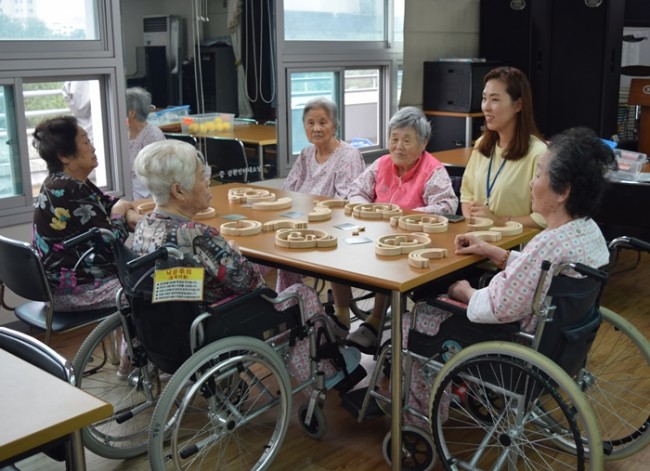 그랜드자연요양병원에서는 노인생활과학연구소가 개발한 다양한 노인교구를 노인용 교구 활용지도사를 통해 입원하고 있는 어르신들께 적용하여 인지개선, 공간지각, 소통도구로 활용하고 있다.
