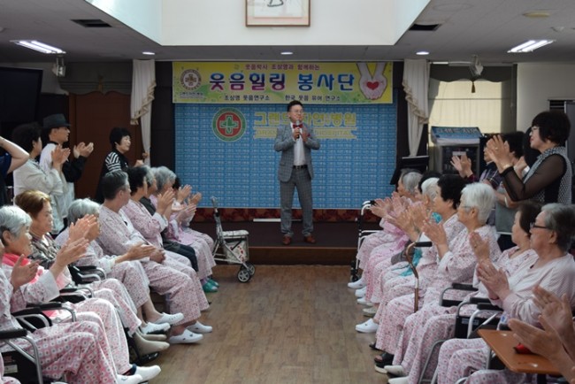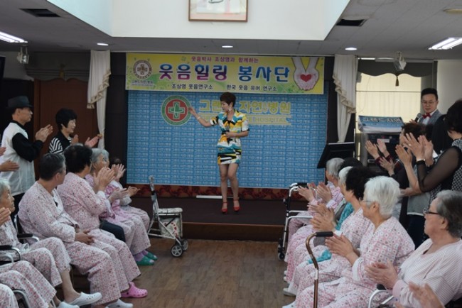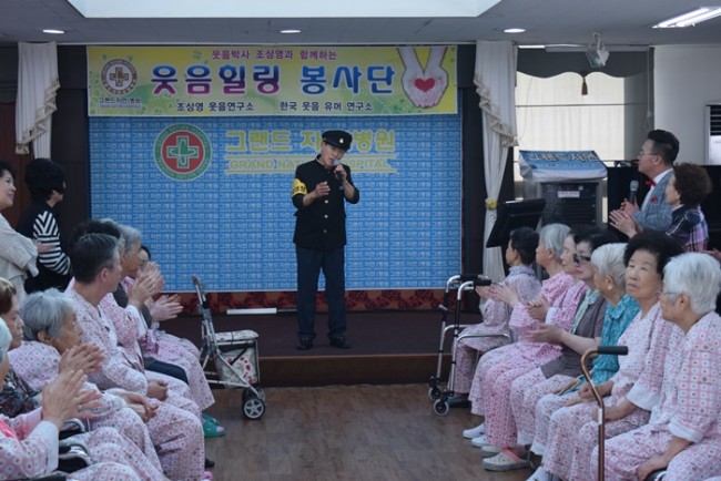 그랜드자연요양병원은 우리 어르신들이 보다 나은 병상생활을 통해 건강해지기 위한 특화 프로그램으로 웃음박사 조상영 교수를 모셔 즐거운 웃음요법을 하고 있다.