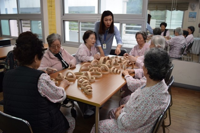 그랜드자연요양병원에서는 노인생활과학연구소가 개발한 다양한 노인교구를 노인용 교구 활용지도사를 통해 입원하고 있는 어르신들께 적용하여 인지개선, 공간지각, 소통도구로 활용하고 있다.