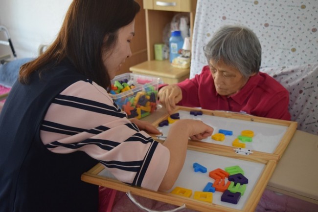 그랜드자연요양병원에서는 노인생활과학연구소가 개발한 다양한 노인교구를 노인용 교구 활용지도사를 통해 입원하고 있는 어르신들께 적용하여 인지개선, 공간지각, 소통도구로 활용하고 있다.